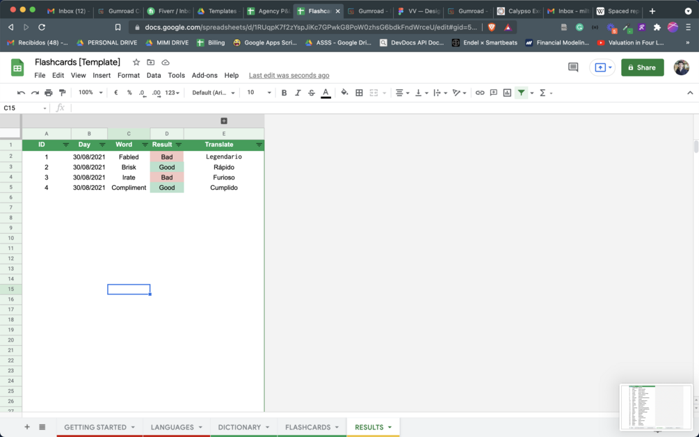 Flashcards - Learn languages with Google sheets
