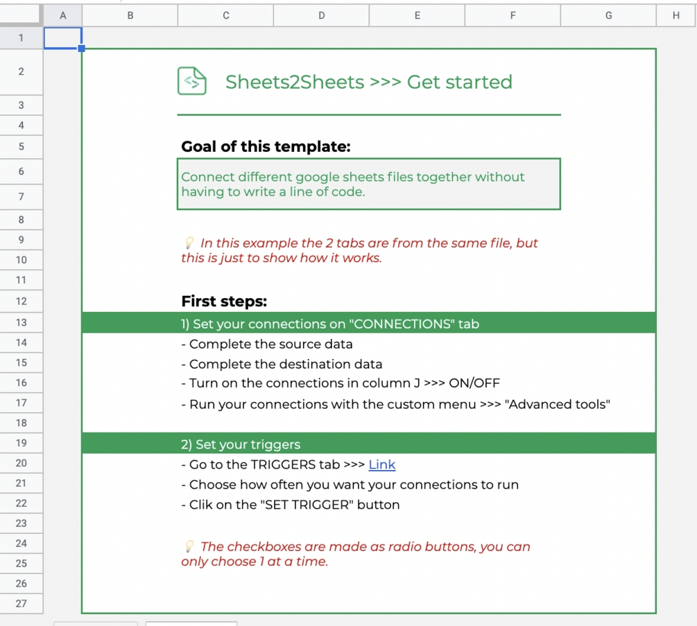 Sheets2sheets - Connect 2 or more Google Sheets files